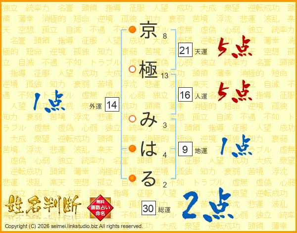 京極みはるさんの天運は21画の5点!