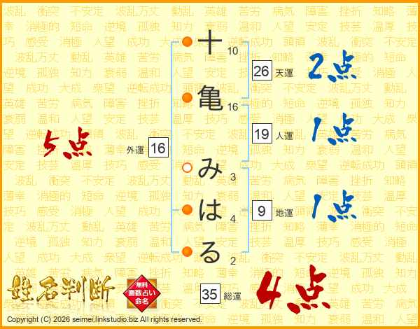十亀みはるさんの総運は35画の4点!