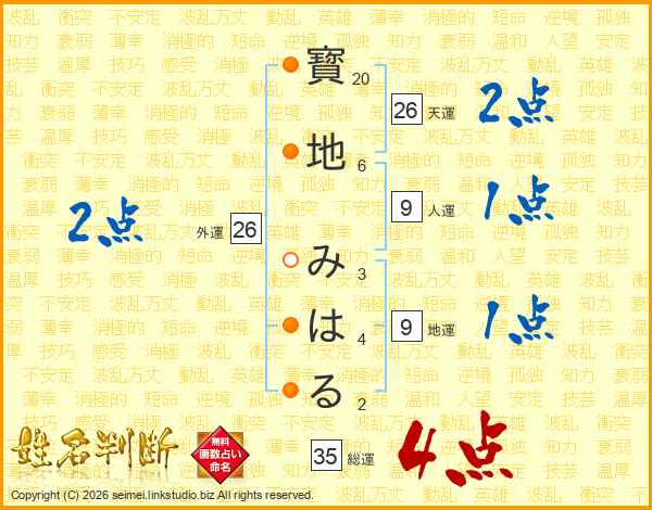 寳地みはるさんの外運は26画の2点!