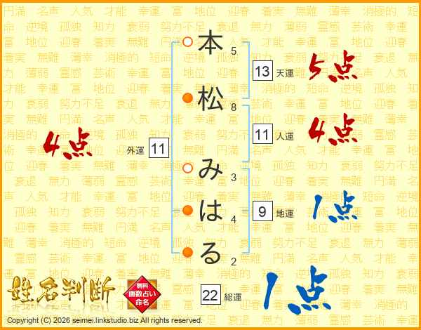 本(5画)松(8画) み(3画)は(4画)る(2画)