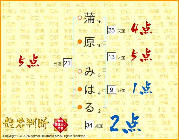 蒲(15画)原(10画) み(3画)は(4画)る(2画)