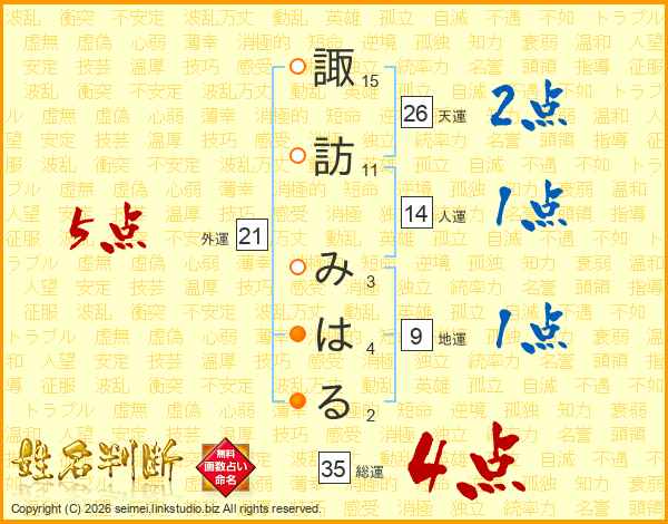 諏訪みはるさんの外運は21画の5点!