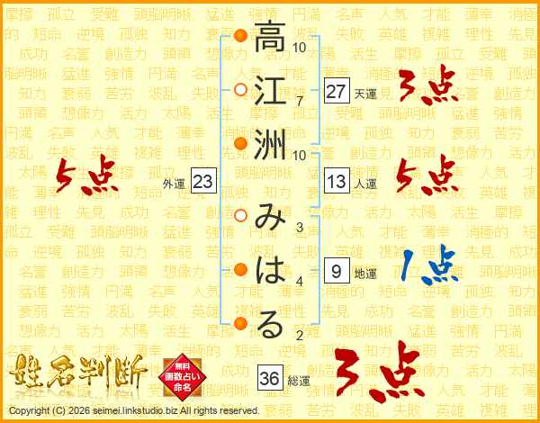高(10画)江(7画)洲(10画) み(3画)は(4画)る(2画)