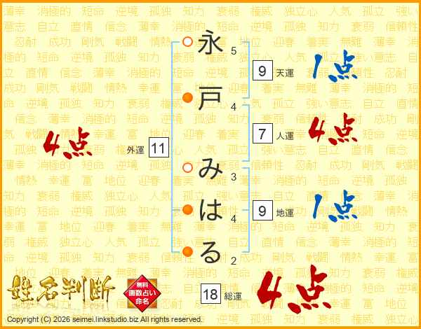 永戸みはるさんの総運は18画の4点!