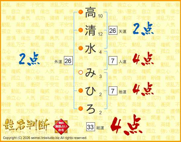 高清水みひろさんの総運は33画の4点!