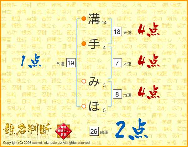溝手みほさんの総運は26画の2点!