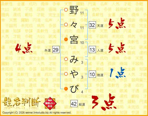 野々宮みやびさんの総運は42画の3点!