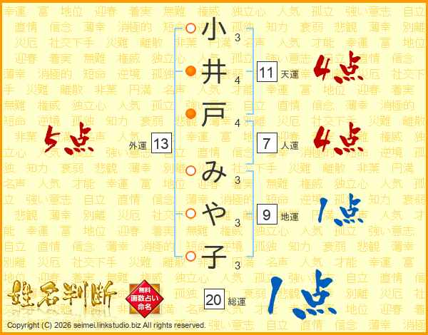 小井戸みや子さんの総運は20画の1点!