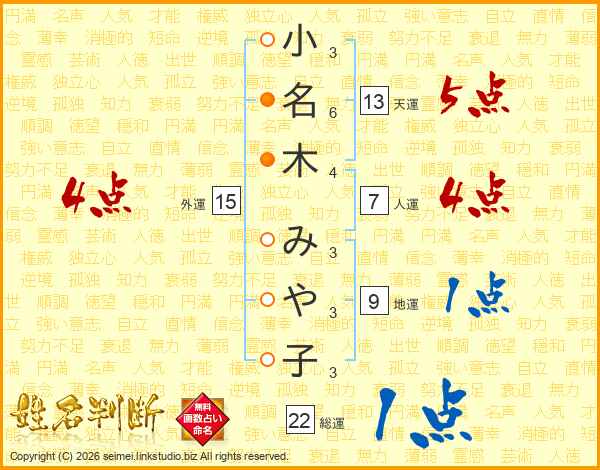 小名木みや子さんの外運は15画の4点!
