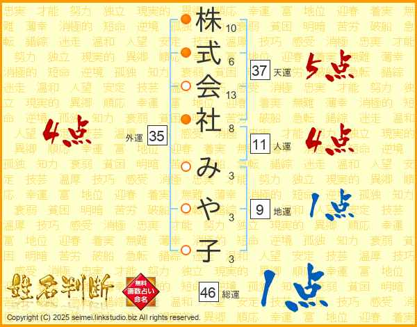 株式会社みや子さんの総運は46画の1点!