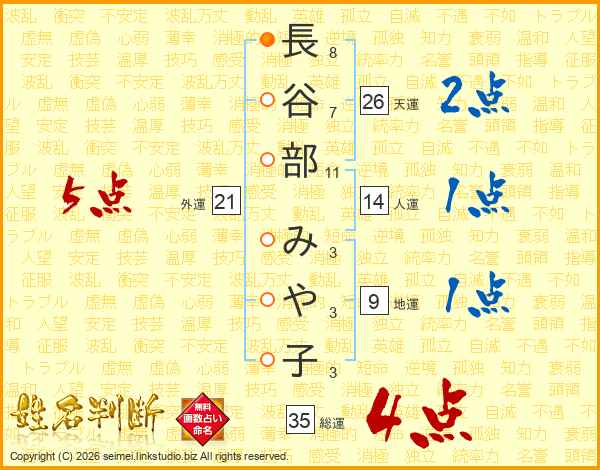 長谷部みや子さんの総運は35画の4点!