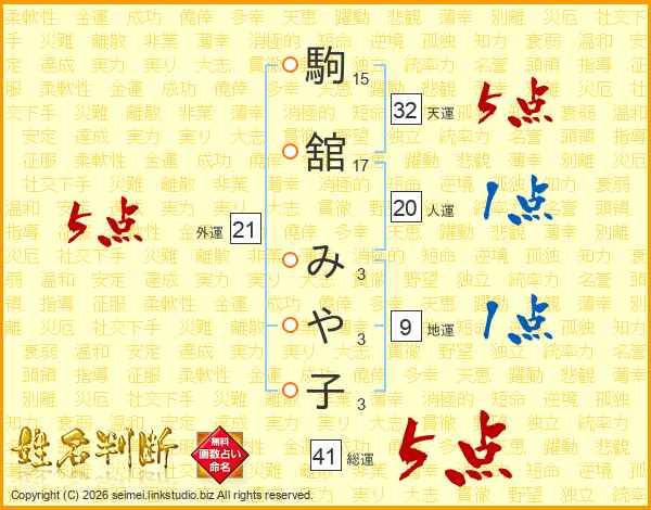 駒舘みや子さんの外運は21画の5点!