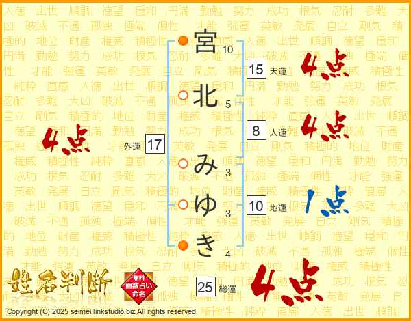 宮北みゆきさんの総運は25画の4点!