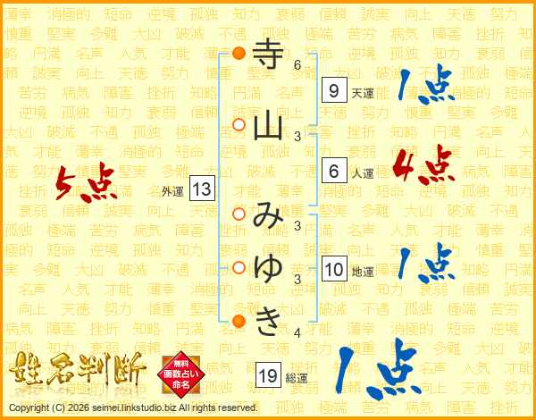 寺山みゆきさんの外運は13画の5点!