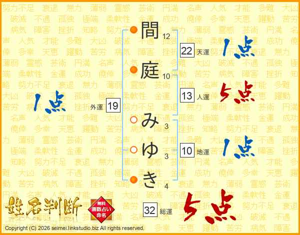 間庭みゆきさんの総運は32画の5点!