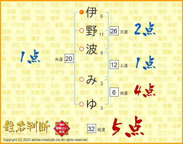 伊野波みゆさんの総運は32画の5点!
