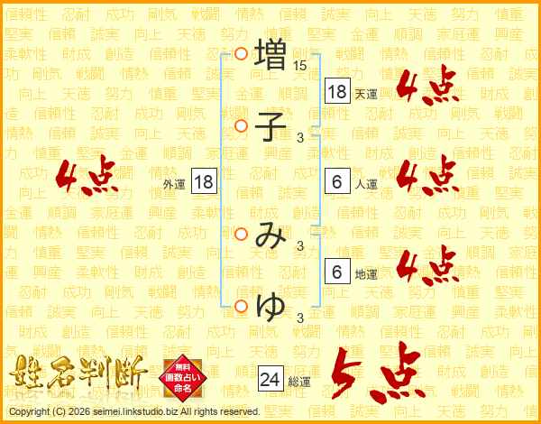 増子みゆさんの外運は18画の4点!