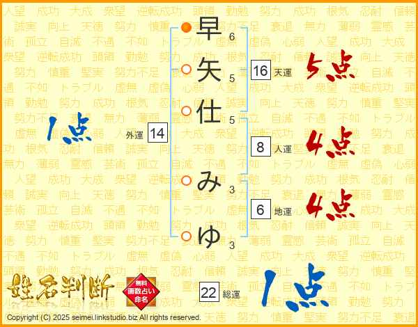 早(6画)矢(5画)仕(5画) み(3画)ゆ(3画)