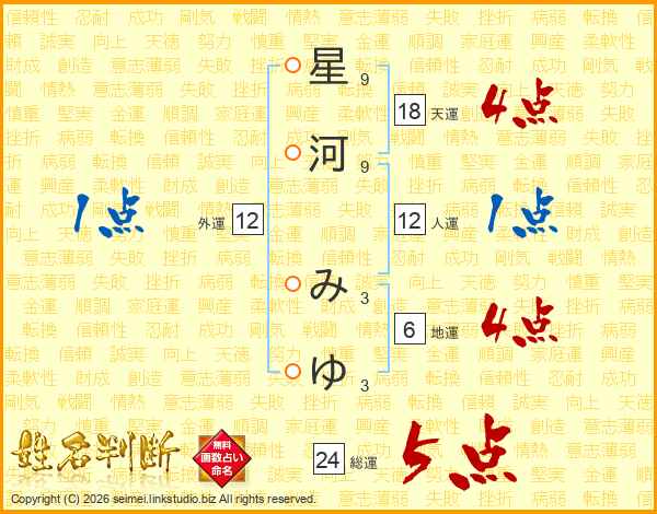 星河みゆさんの総運は24画の5点!