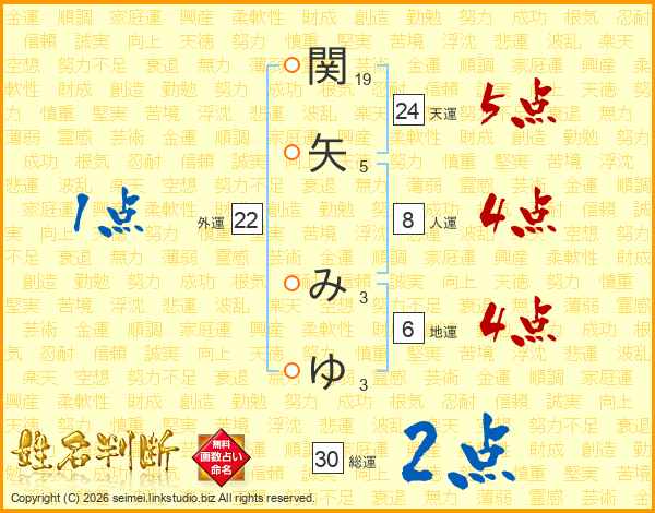 関矢みゆさんの総運は30画の2点!