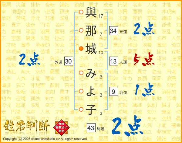 與那城みよ子さんの総運は43画の2点!