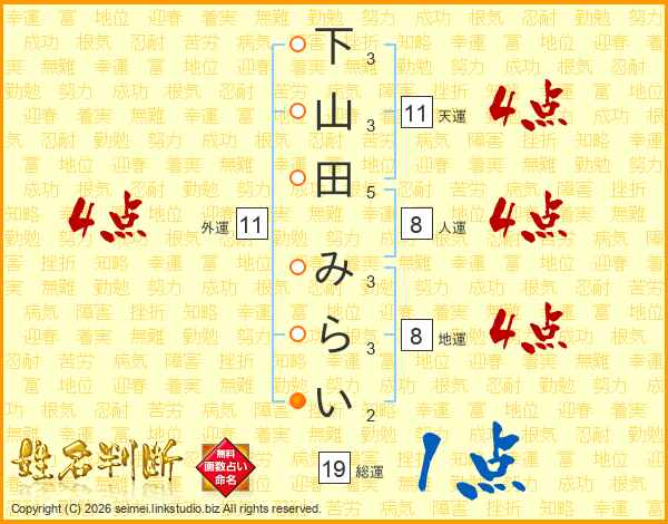 下(3画)山(3画)田(5画) み(3画)ら(3画)い(2画)