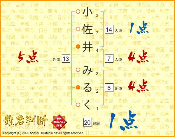 小佐井みるくさんの総運は20画の1点!