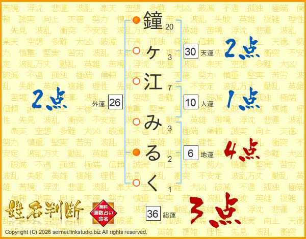鐘ヶ江みるくさんの総運は36画の3点!