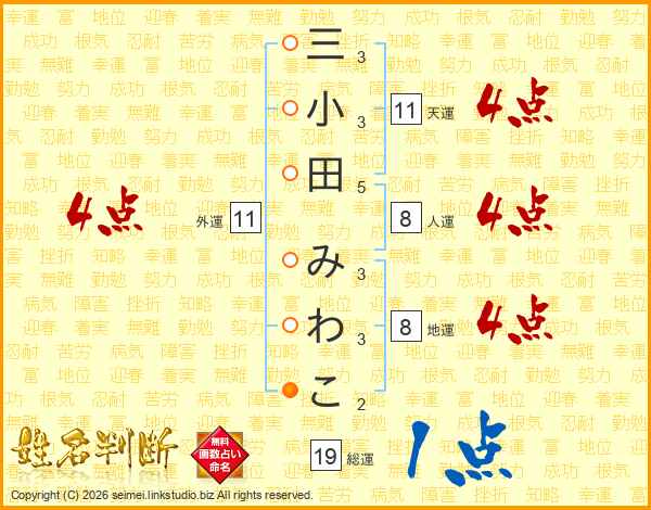 三小田みわこさんの外運は11画の4点!