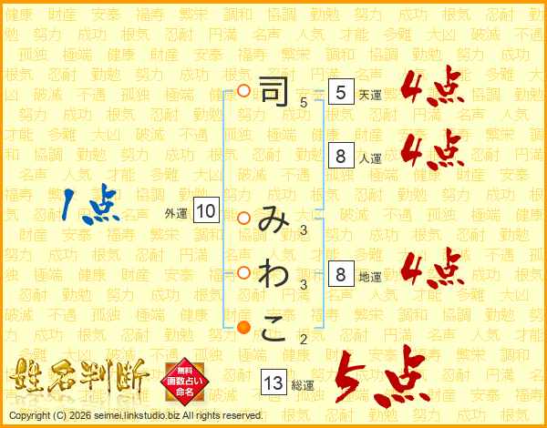 司みわこさんの総運は13画の5点!