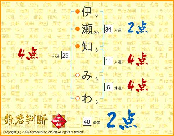 伊瀬知みわさんの総運は40画の2点!