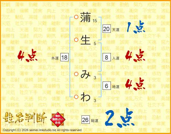 蒲生みわさんの総運は26画の2点!