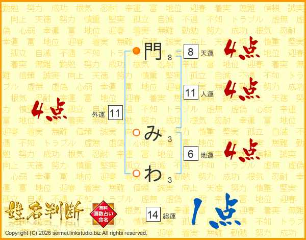 門みわさんの総運は14画の1点!