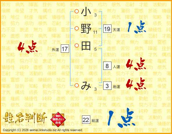 小野田みさんの天運は19画の1点!