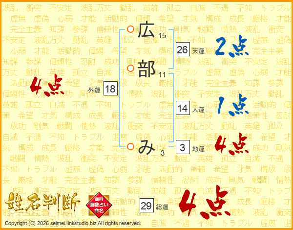 広部みさんの総運は29画の4点!