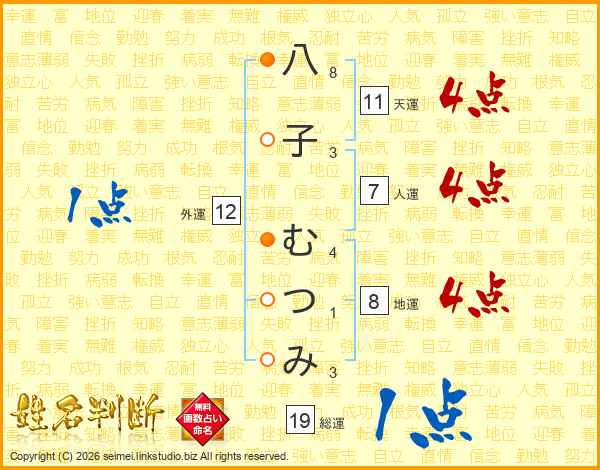 八子むつみさんの総運は19画の1点!