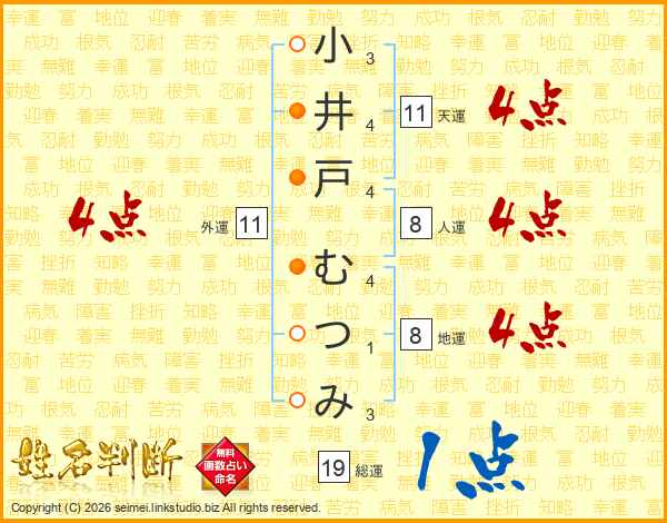 小井戸むつみさんの天運は11画の4点!