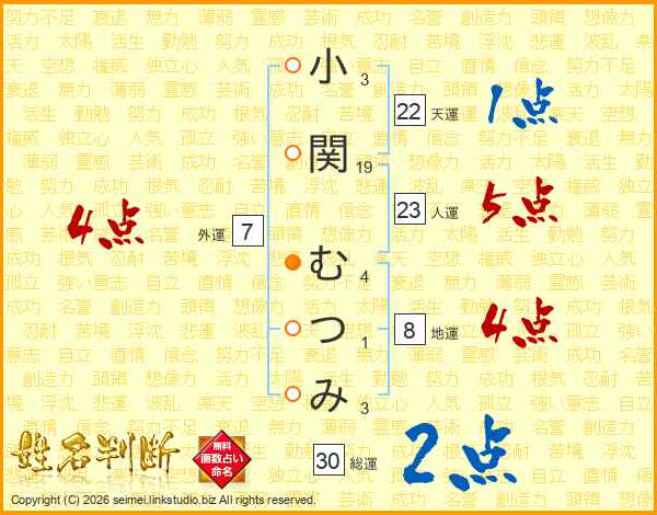 小関むつみさんの天運は22画の1点!