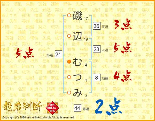 磯辺むつみさんの総運は44画の2点!