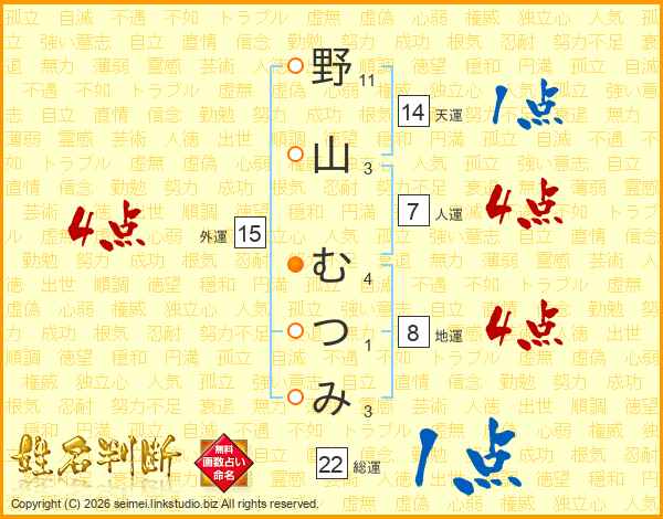 野山むつみさんの人運は7画の4点!