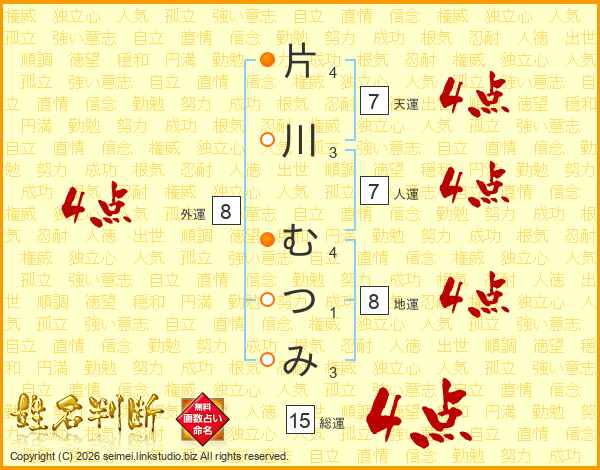 片川むつみさんの総運は15画の4点!