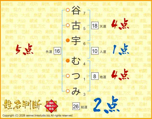 谷古宇むつみさんの総運は26画の2点!