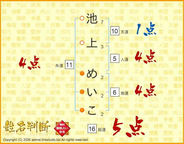 池上めいこさんの総運は16画の5点!