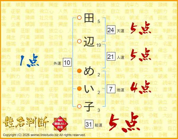 田辺めい子さんの総運は31画の5点!
