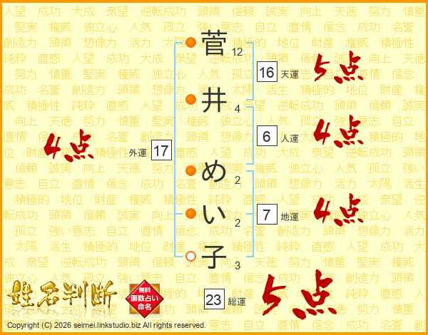 菅井めい子さんの外運は17画の4点!