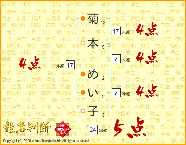 菊本めい子さんの天運は17画の4点!