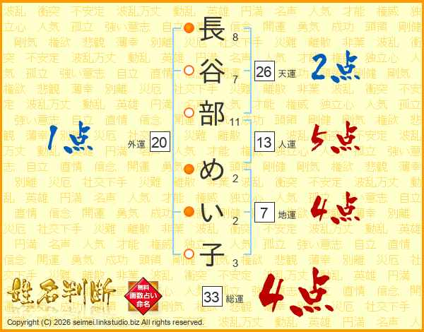 長谷部めい子さんの天運は26画の2点!