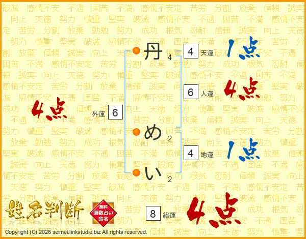 丹めいさんの総運は8画の4点!