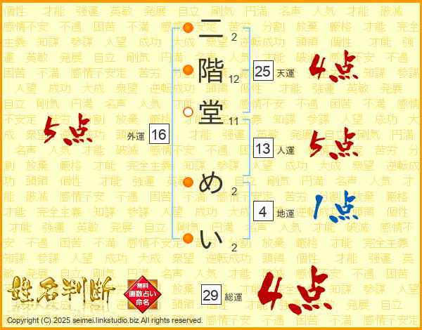 二階堂めいさんの天運は25画の4点!