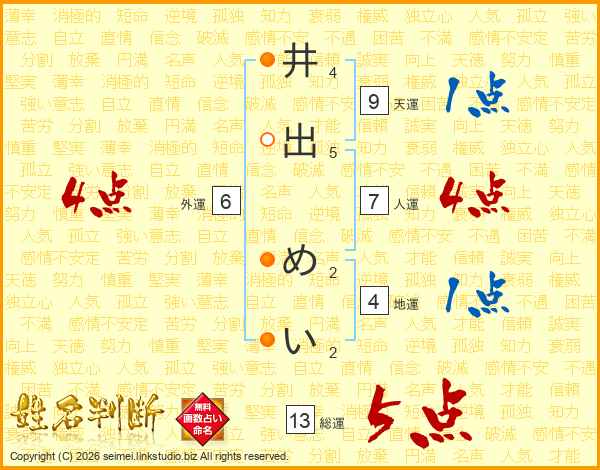 井出めいさんの総運は13画の5点!